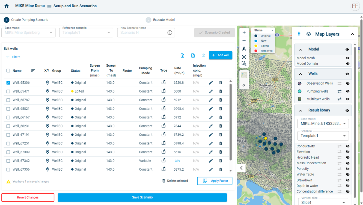 The MIKE Mine platform has been designed around simplifying mine water management by merging real-time measured data and groundwater models in a single, accessible database. This integration allows users to not only visualise but also manage and compare their data effortlessly, ensuring that their water management strategies are based on the most accurate and current information.